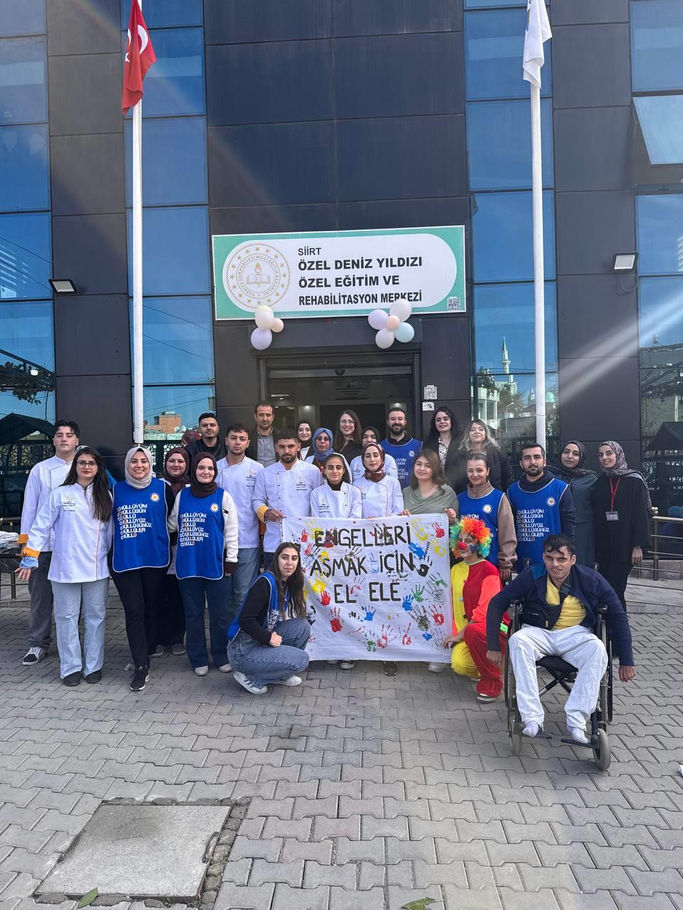 Üniversitemiz öğrenci topluluklarından Aşçılık Topluluğu, 4 Aralık 2025 Perşembe günü Deniz Yıldızı Rehabilitasyon Merkezinde "Engelsiz Lezzetler, Sıcacık Buluşmalar" etkinliğini düzenledi. Etkinlik 4 saat sürdü ve etkinlik 80 kişi katıldı. Etkinlik kapsamında engelli bireyler konusunda farkındalık oluşturmak, öğrenciler ve özel gereksinimli bireyler arasında sosyal etkileşimi sağlamak, toplumsal duyarlılığı artırmak, özel gereksinimli bireylerle yapılan etkinlikler olumlu iletişim ve etkileşim sağlanmıştır, katılımcılarda engellilik farkındalığı ve duyarlılığı artmıştır.