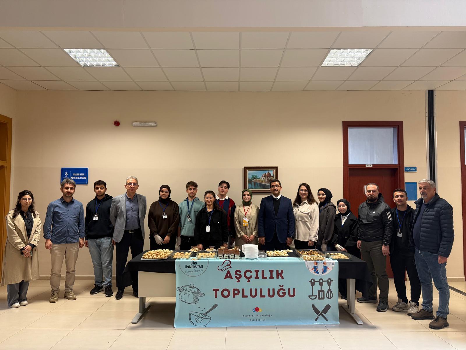 Üniversitemiz öğrenci topluluklarından Aşçılık Topluluğu, 19 Kasım 2025 Çarşamba günü Siirt Üniversitesi Eğitim Fakültesi A Blok ta "Geleceğin Öğretmenlerine Yönelik Öğretmenler Günü Kutlaması" etkinliğini düzenledi. Etkinlik 2 saat sürdü ve etkinliğe 150 kişi katılım sağladı. Etkinliğin amacı mesleki motivasyonu sağlamak, mesleki farkındalık kazandırmak, topluluk bilinci oluşturmak, aidiyetlik ve birlik duygusunu güçlendirmek, mesleki değerin farkındalığı, katılımcı memnuniyeti ve eğitim imajının güçlendirilmesine yönelikti.