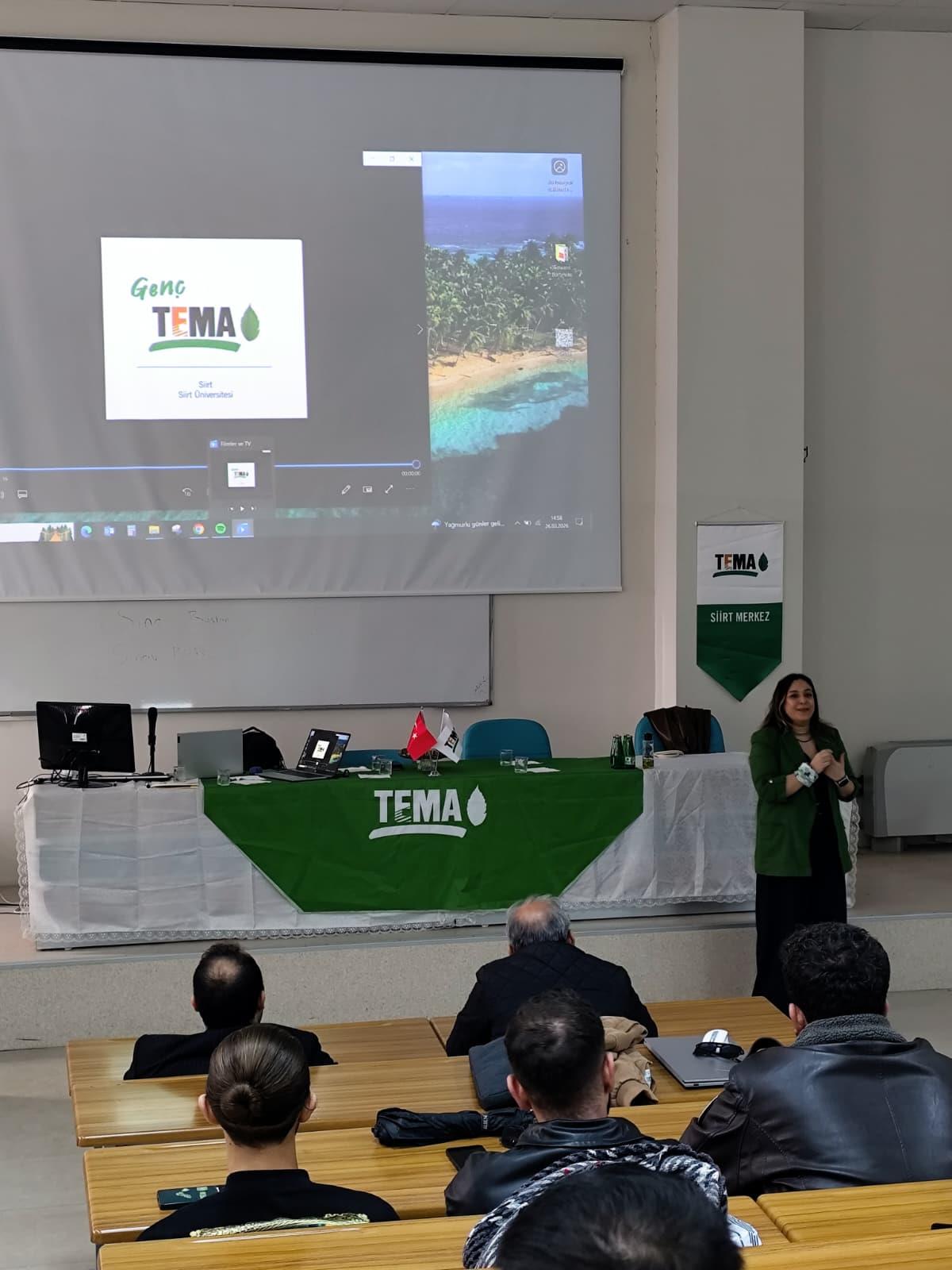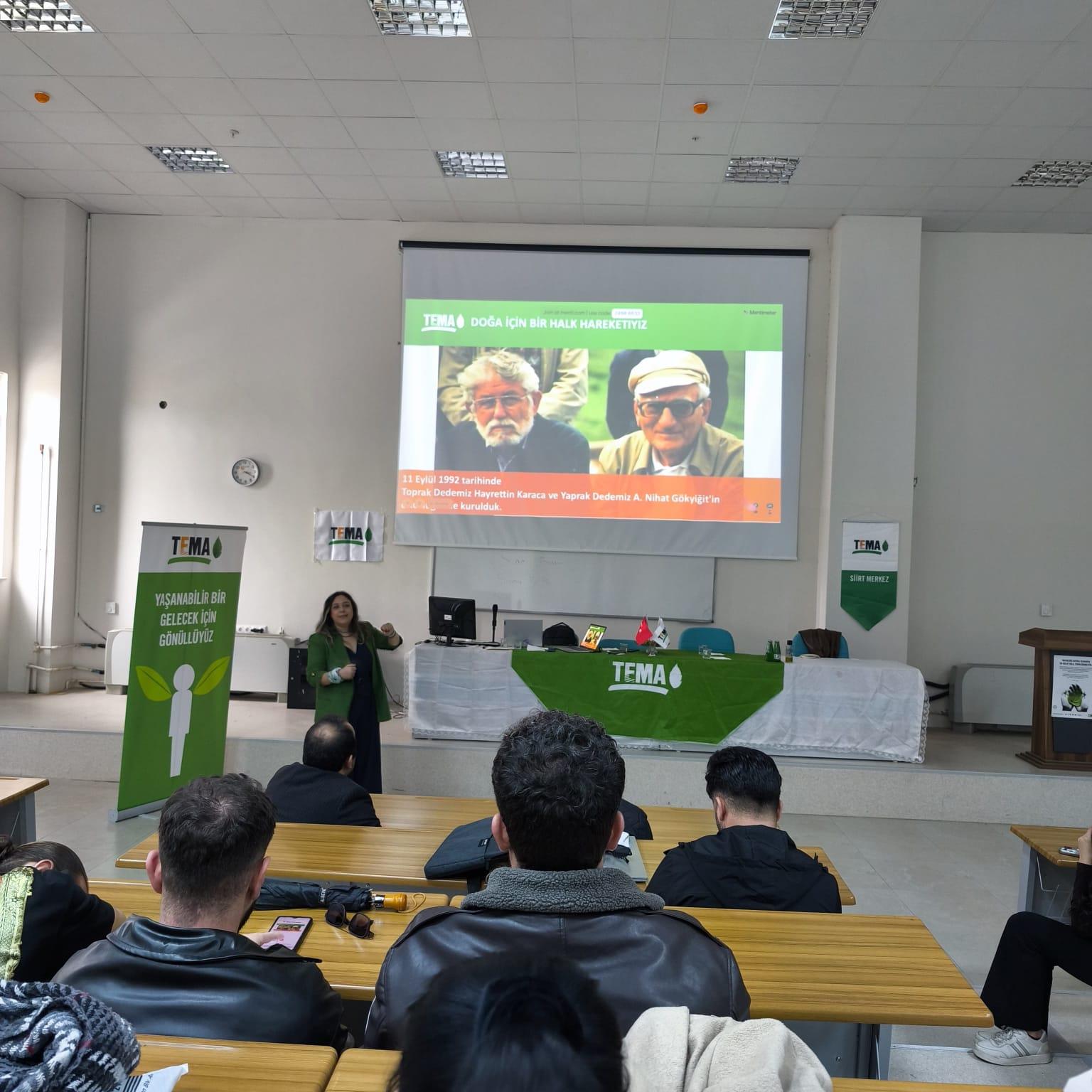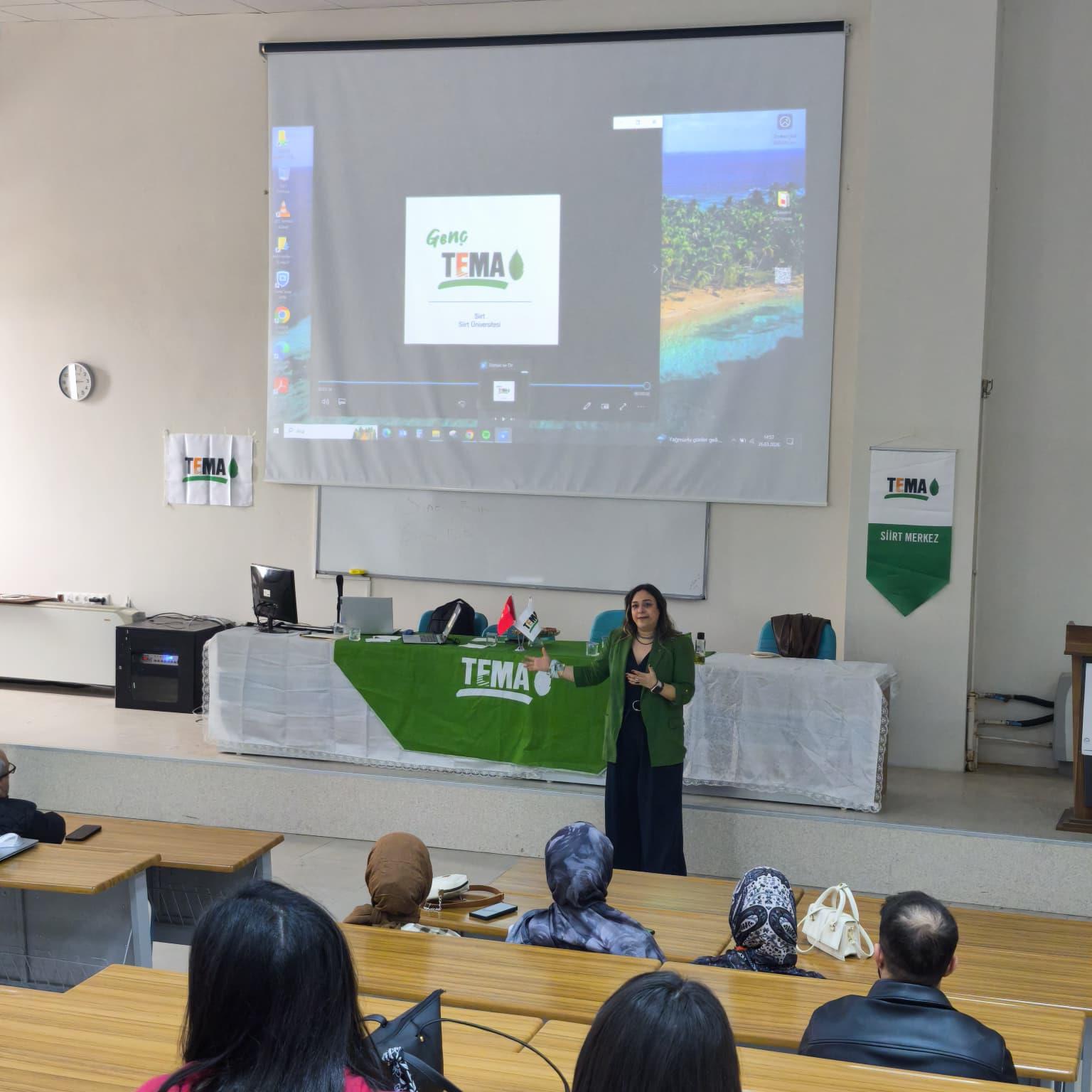 Üniversitemiz öğrenci topluluklarından Genç TEMA Topluluğu tarafından düzenlenen TEMA Vakfı Tanıtımı ve Çevre Farkındalığı Etkinliği, 26 Mart 2026 tarihinde Siirt Üniversitesi İlahiyat Fakültesi Amfi 3 salonunda gerçekleştirildi.