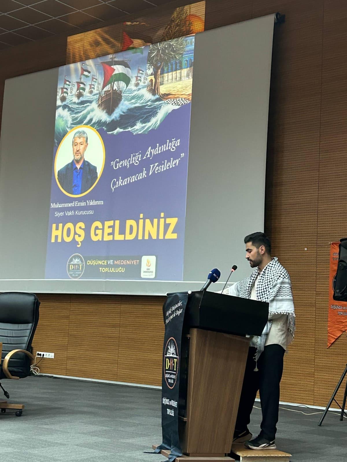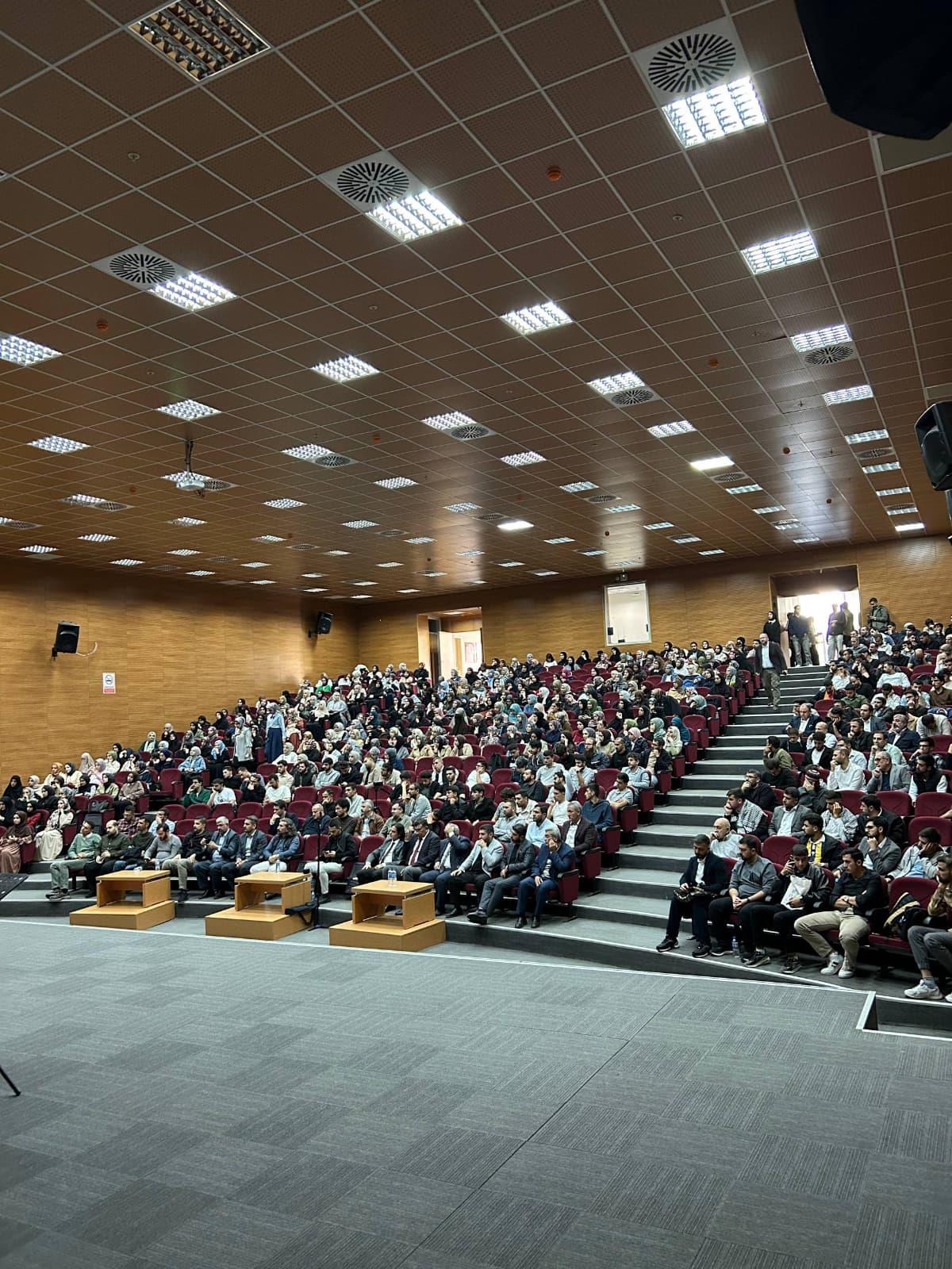 Üniversitemiz öğrenci topluluklarından "Düşünce ve Medeniyet Topluluğu", 3 Kasım 2025 Pazartesi günü İlahiyat Fakültesi konferans salonunda Muhammed Emin YILDIRIM'ın katılımıyla "Gençliği Aydınlığa Çıkaracak Vesileler" etkinliğini düzenledi. Etkinlik 2 saat sürdü ve etkinliğe 700 kişi katıldı. Etkinlik kapsamında gençlerin dini, ahlaki ve kültürel değerler konusunda bilinçlenmeleri; manevi yönelimlerini güçlendirerek hayatlarına anlam katmaları hedeflenmiştir. Ayrıca, gençlerin toplumsal sorumluluk bilinci kazanmaları, kendi kimlik ve inanç temelleri üzerinde sağlam bir duruş geliştirmeleri ve örnek şahsiyetlerin rehberliğinde hayata daha umutlu bakmaları amaçlanmıştır. Etkinlik sonunda, öğrencilerin yoğun bir ilgi ve dikkatle programa katıldıkları gözlemlenmiştir. Katılımcılar, konuşmacı Muhammed Emin Yıldırım hocanın anlattığı fikir ve tecrübelerden ilham almış; manevi değerlere bağlılık, gençliğin yönünü belirlemede bilinçli tercihler yapma ve hayat gayesini yeniden değerlendirme konusunda farkındalık kazanmışlardır. Program, öğrenciler arasında güçlü bir manevi motivasyon ve birlik duygusu oluşturmuştur.