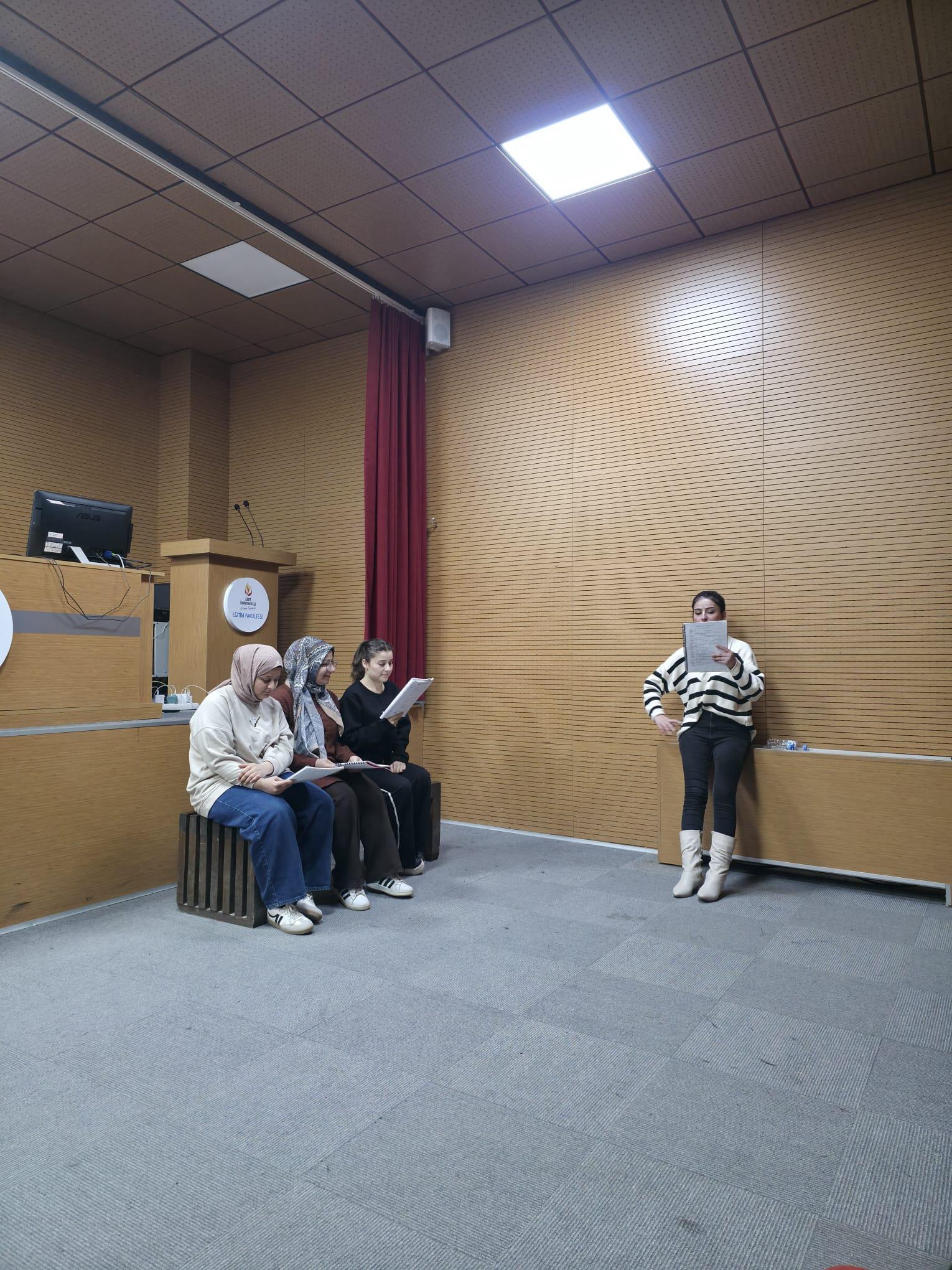 Tiyatro türündeki etkinlik, saat 15.00–17.00 arasında iki saat sürdü ve üniversite içinden 25 öğrencinin katılımıyla tamamlandı.