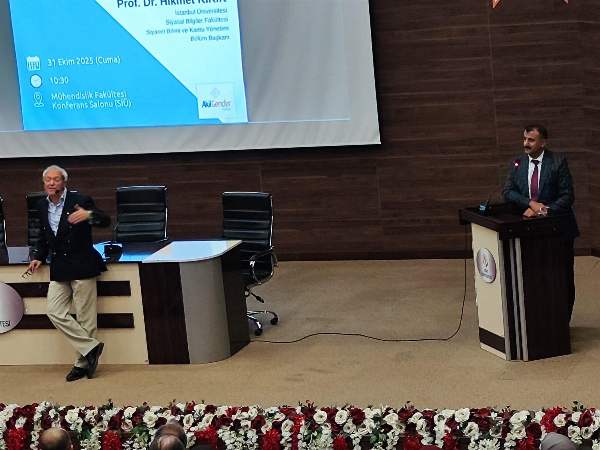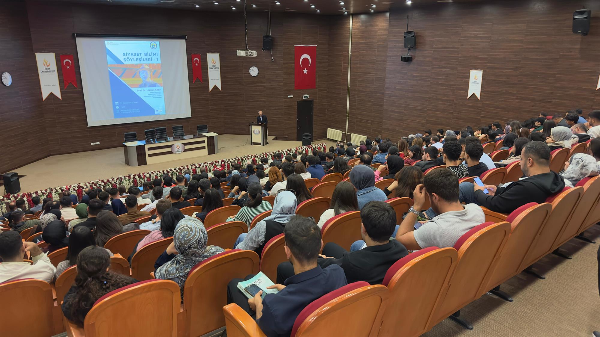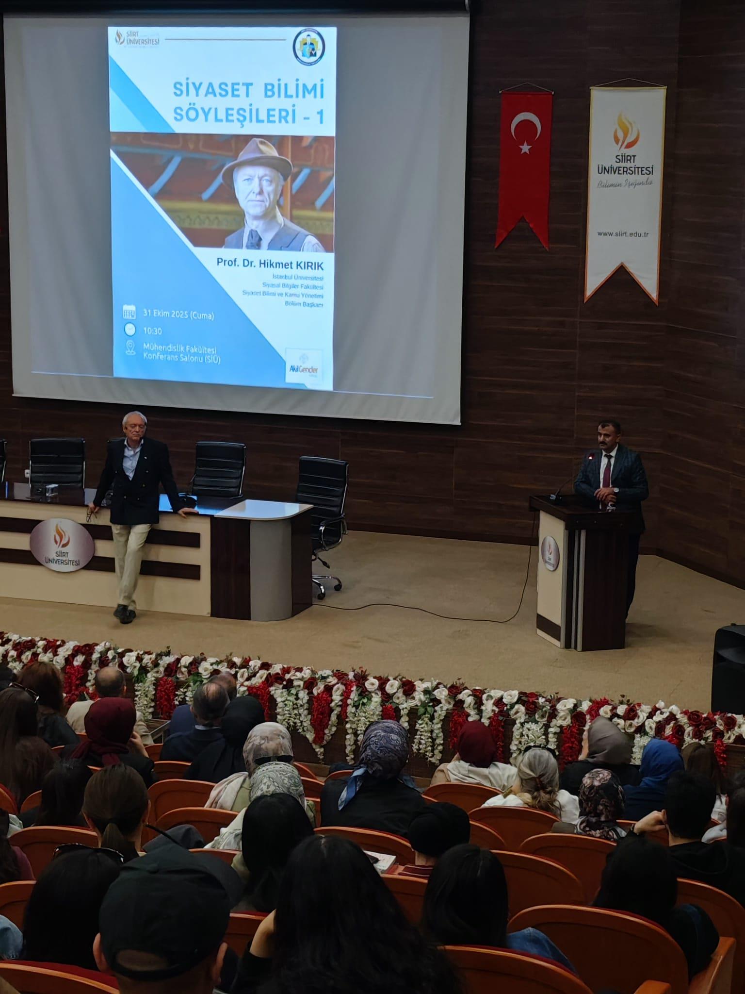 Üniversitemiz öğrenci topluluklarından "Ombudsmanlık Topluluğu", 31 Ekim 2025 Cuma günü Mühendislik Fakültesi konferans salonunda Prof. Dr. Hikmet KIRIK'ın katılımıyla "Siyaset Bilimi Söyleşileri" etkinliğini düzenledi. Etkinlik 1 gün sürdü ve etkinliğe 450 kişi katıldı. Etkinlik kapsamında katılımcılar adalet ve özgürlük kavramlarının tarihsel ve güncel bağlamlarını değerlendirme fırsatı buldu. Prof. Dr. Halit KIRIK'ın örneklerle zenginleştirdiği anlatımı, öğrencilerin kavramları somutlaştırmasına yardımcı oldu. etkinlik sonrası yapılan geri bildirimlerde katılımcılar söyleşinin düşünsel ufuklarını genişlettiğini belirtti. Akademik ve sosyal bağlamda öğrenciler arasında tartışma kültürünün teşvik edildiği gözlemlendi.