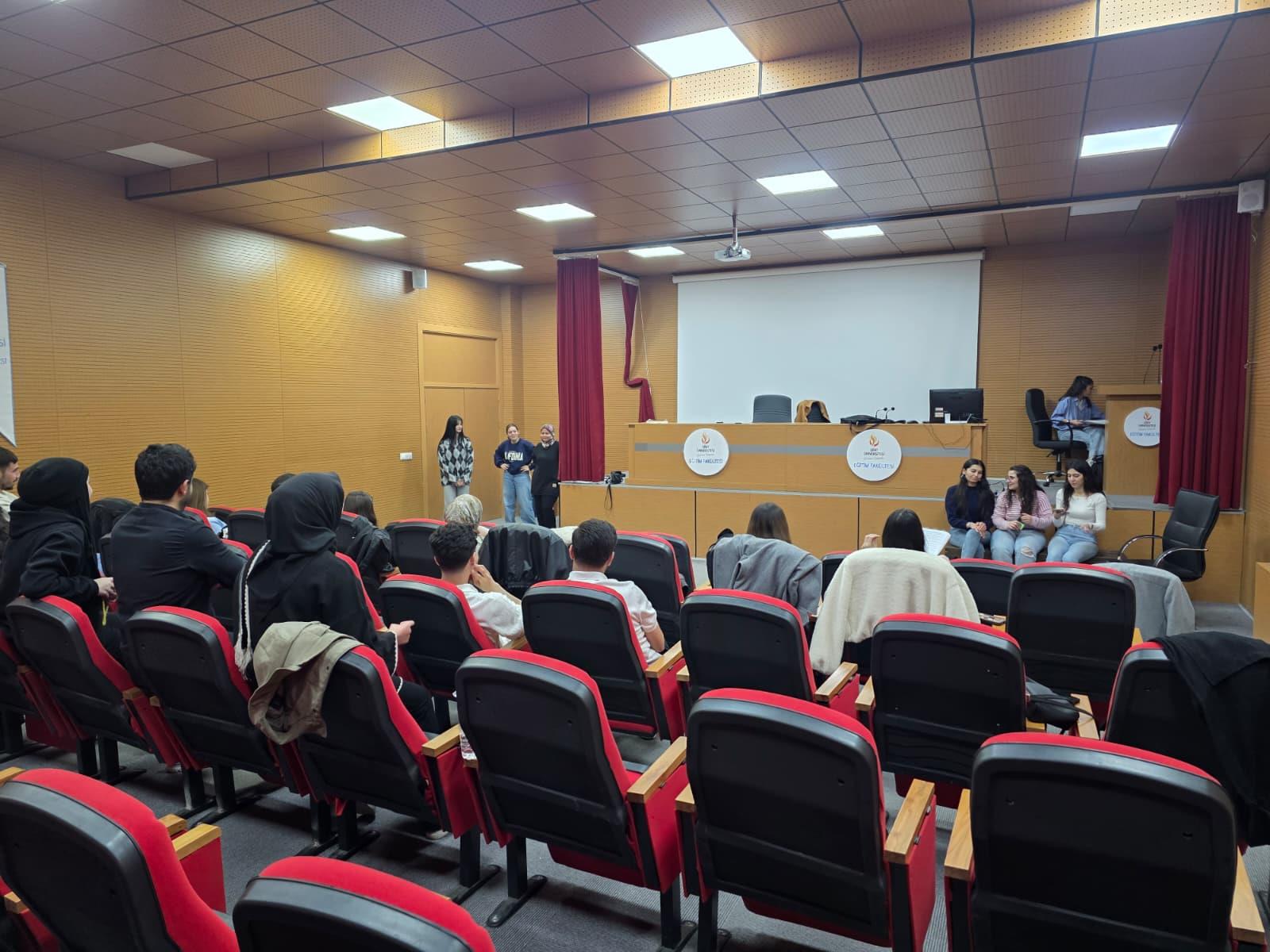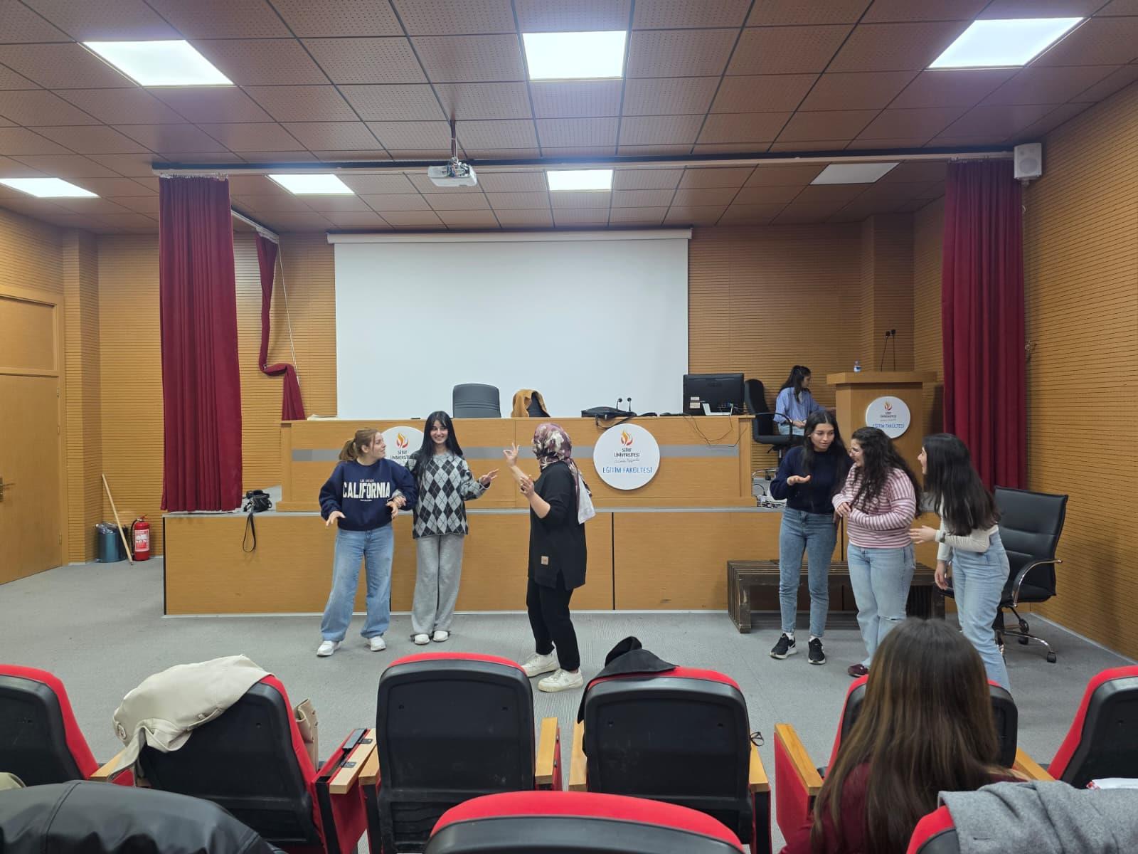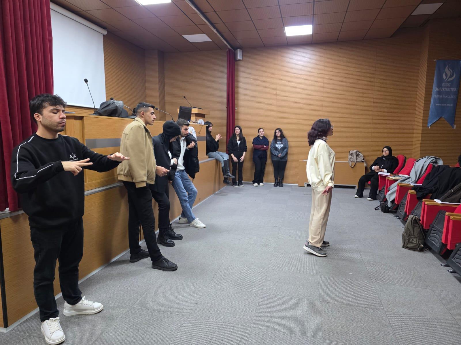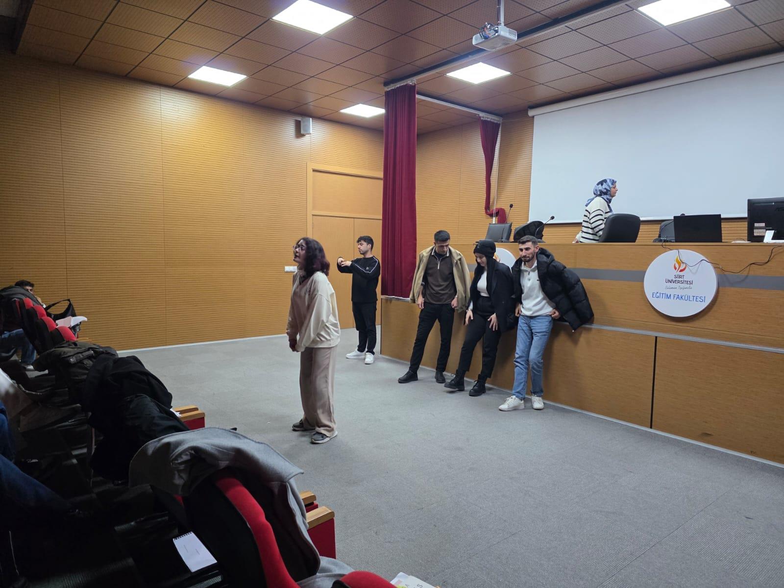 Tiyatro türünde düzenlenen ve 2 saat süren (15.00–17.00) etkinliğe üniversite içinden 25 öğrenci katılım sağladı.