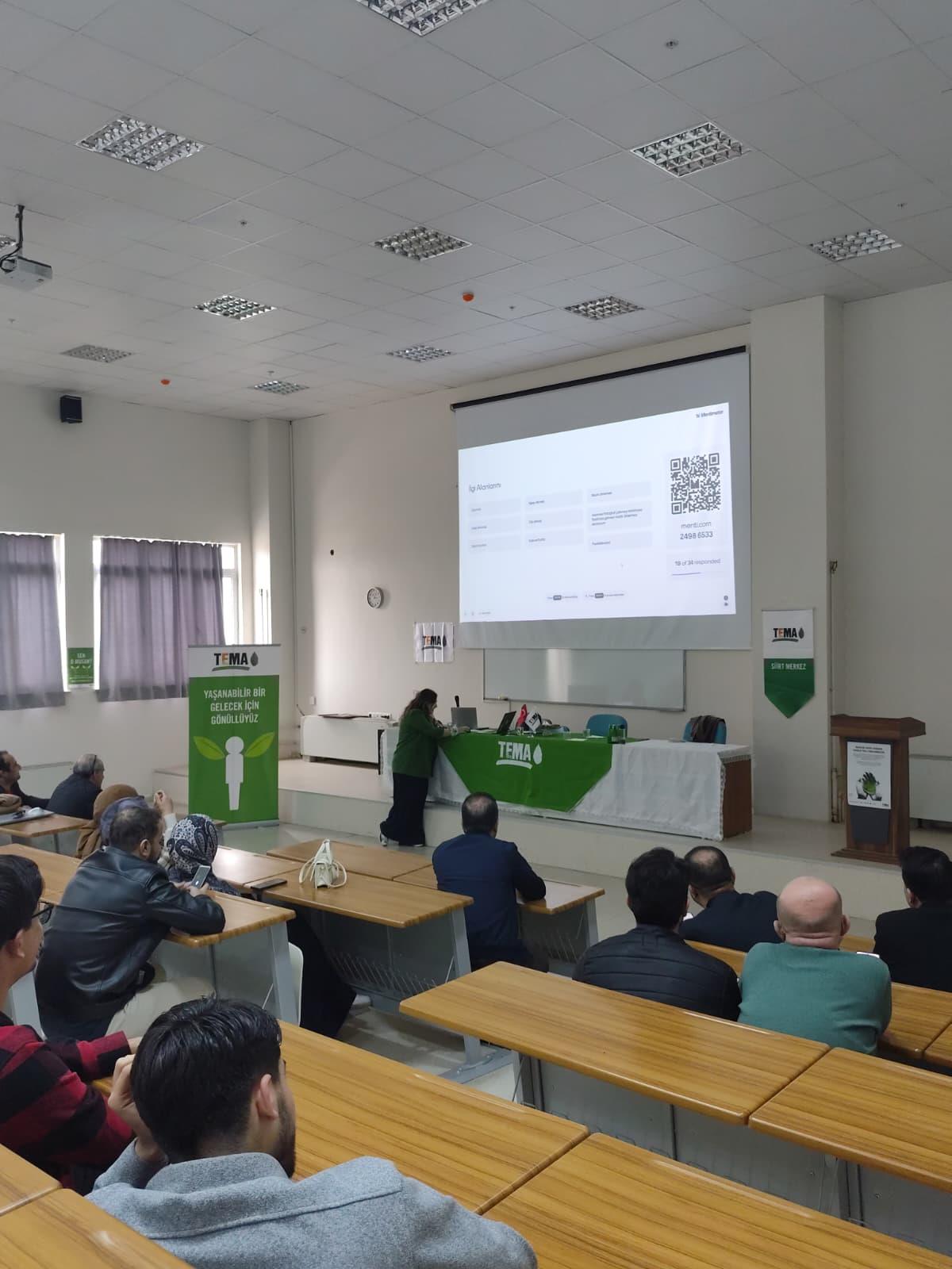 Üniversitemiz öğrenci topluluklarından Genç TEMA Topluluğu tarafından düzenlenen TEMA Vakfı Tanıtımı ve Çevre Farkındalığı Etkinliği, 26 Mart 2026 tarihinde Siirt Üniversitesi İlahiyat Fakültesi Amfi 3 salonunda gerçekleştirildi.