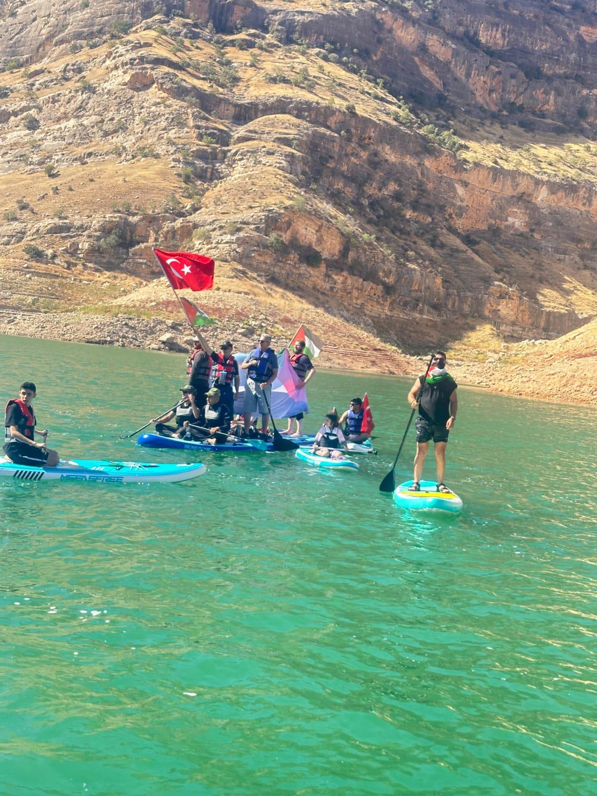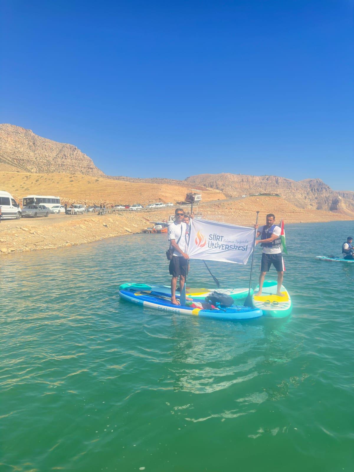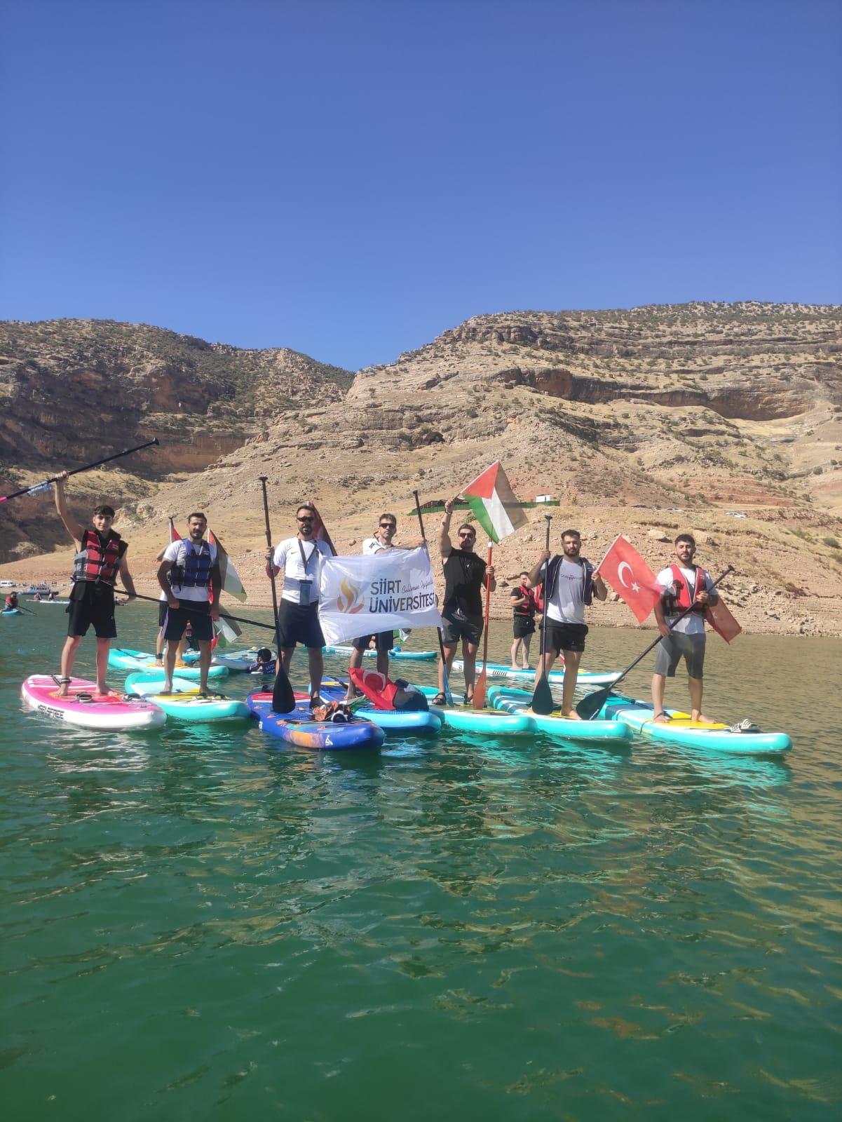 Etkinlik kapsamında Kano SUP Topluluğu gerçekleştirdiği Sumud Filosuna Destek Etkinliği, İsrail’in Gazze’de sürdürdüğü işgali ve insani krizi barışçıl bir şekilde protesto etmek, aynı zamanda Filistin halkının direnişine ve özgürlük mücadelesine sembolik destek vermek amacıyla düzenlenmiştir. Üniversitemizden 17 öğrencinin katılımıyla Botan Vadisi’nde gerçekleştirilen etkinlikte, topluluk üyeleri suya açılarak "Sumud'hın temsil ettiği sabır, direniş ve dayanışma ruhunu paylaşmıştır. Bu etkinlik, öğrenciler arasında uluslararası adalet, insan hakları ve barış kavramlarına yönelik farkındalık oluşturmuş, bireylerin küresel olaylara duyarlılığını güçlendirmiştir.