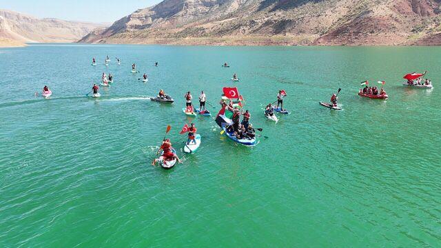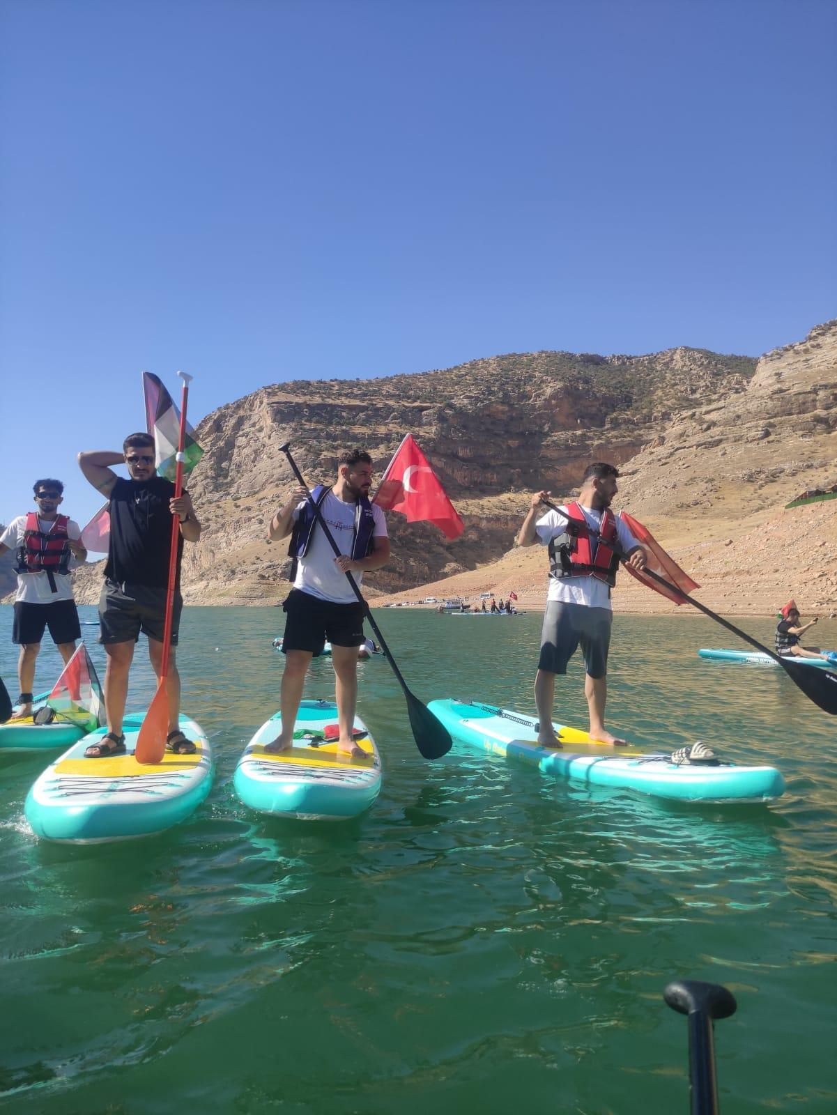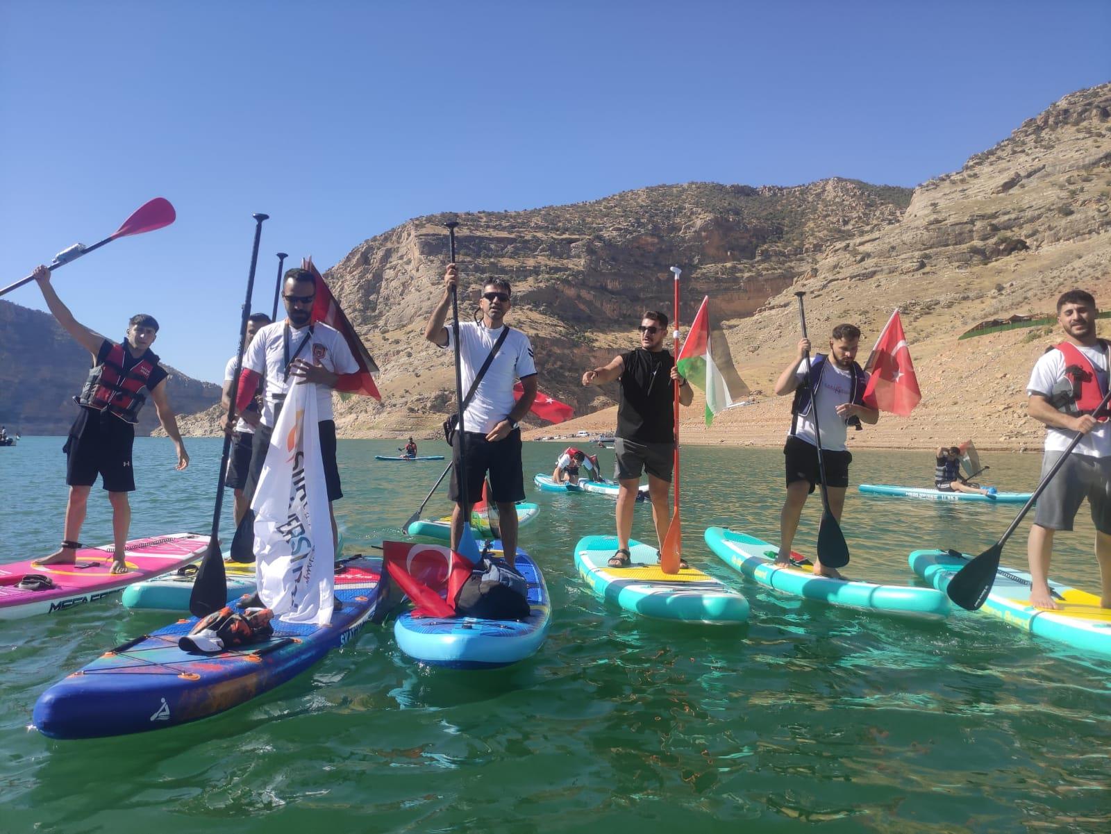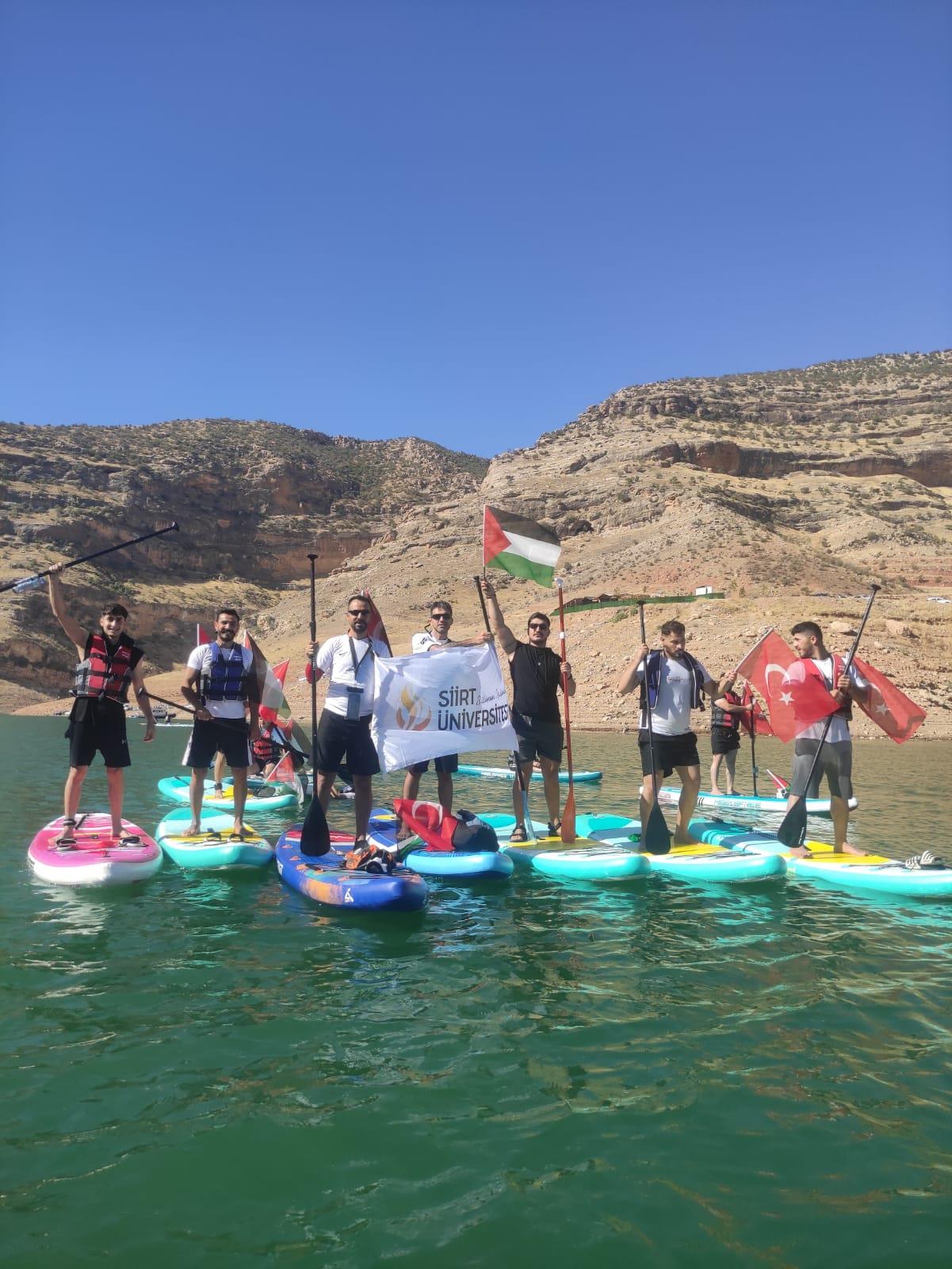 Etkinlik kapsamında Kano SUP Topluluğu gerçekleştirdiği Sumud Filosuna Destek Etkinliği, İsrail’in Gazze’de sürdürdüğü işgali ve insani krizi barışçıl bir şekilde protesto etmek, aynı zamanda Filistin halkının direnişine ve özgürlük mücadelesine sembolik destek vermek amacıyla düzenlenmiştir. Üniversitemizden 17 öğrencinin katılımıyla Botan Vadisi’nde gerçekleştirilen etkinlikte, topluluk üyeleri suya açılarak "Sumud'hın temsil ettiği sabır, direniş ve dayanışma ruhunu paylaşmıştır. Bu etkinlik, öğrenciler arasında uluslararası adalet, insan hakları ve barış kavramlarına yönelik farkındalık oluşturmuş, bireylerin küresel olaylara duyarlılığını güçlendirmiştir.