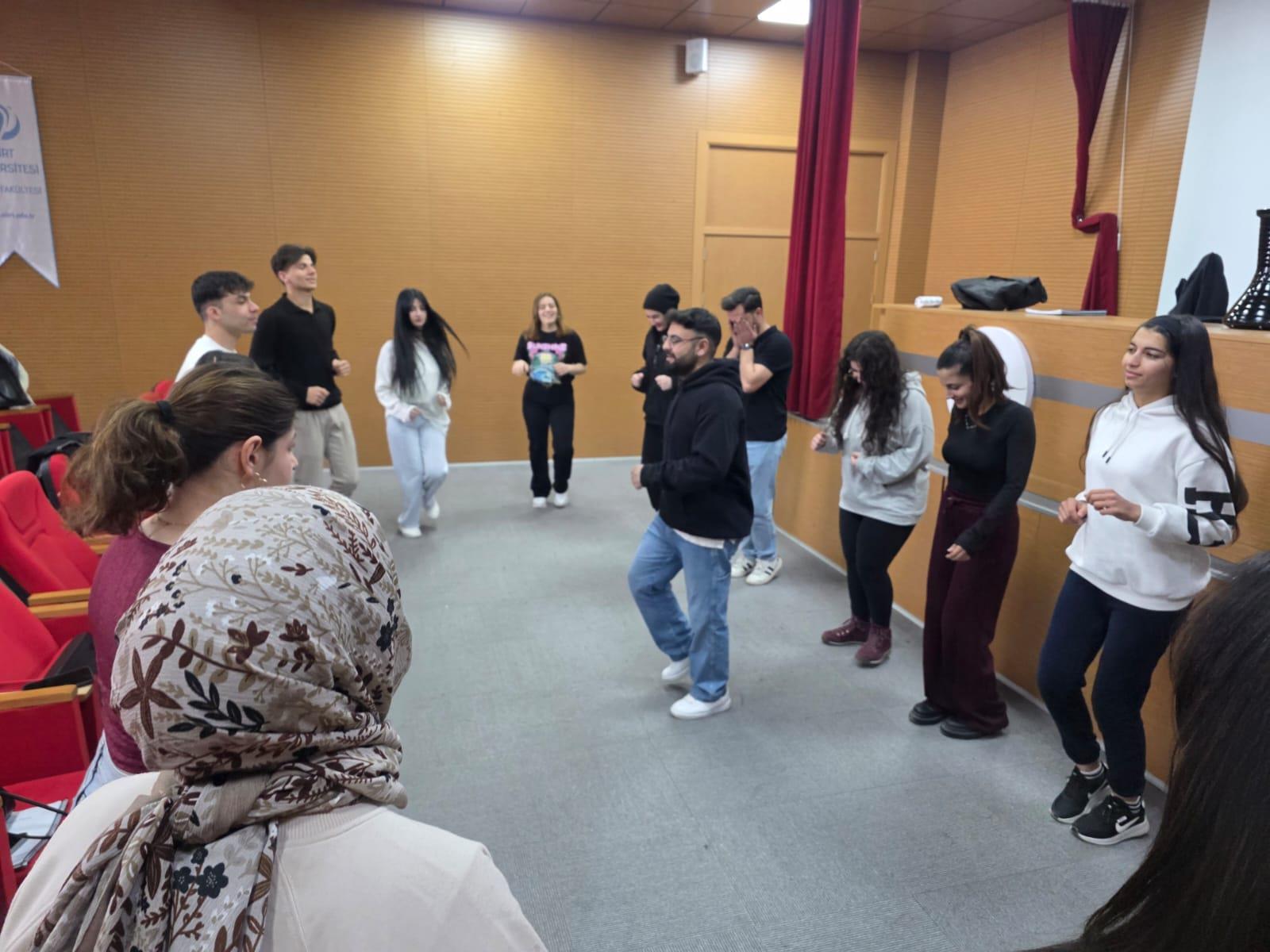 Tiyatro temelli etkinlikler kapsamında düzenlenen seminer, saat 15.00–17.00 arasında iki saat sürdü ve üniversite içinden 25 öğrencinin katılımıyla tamamlandı.