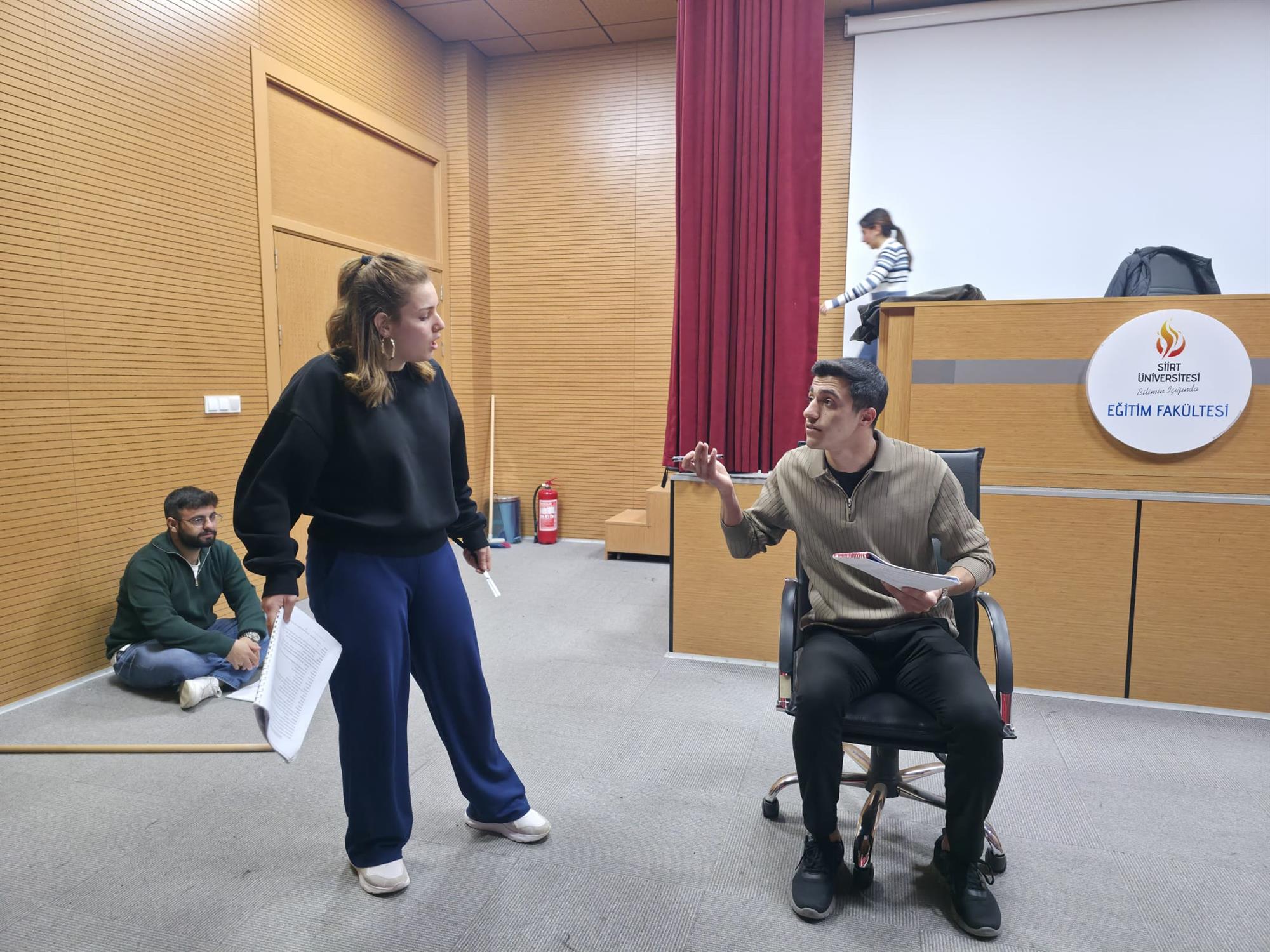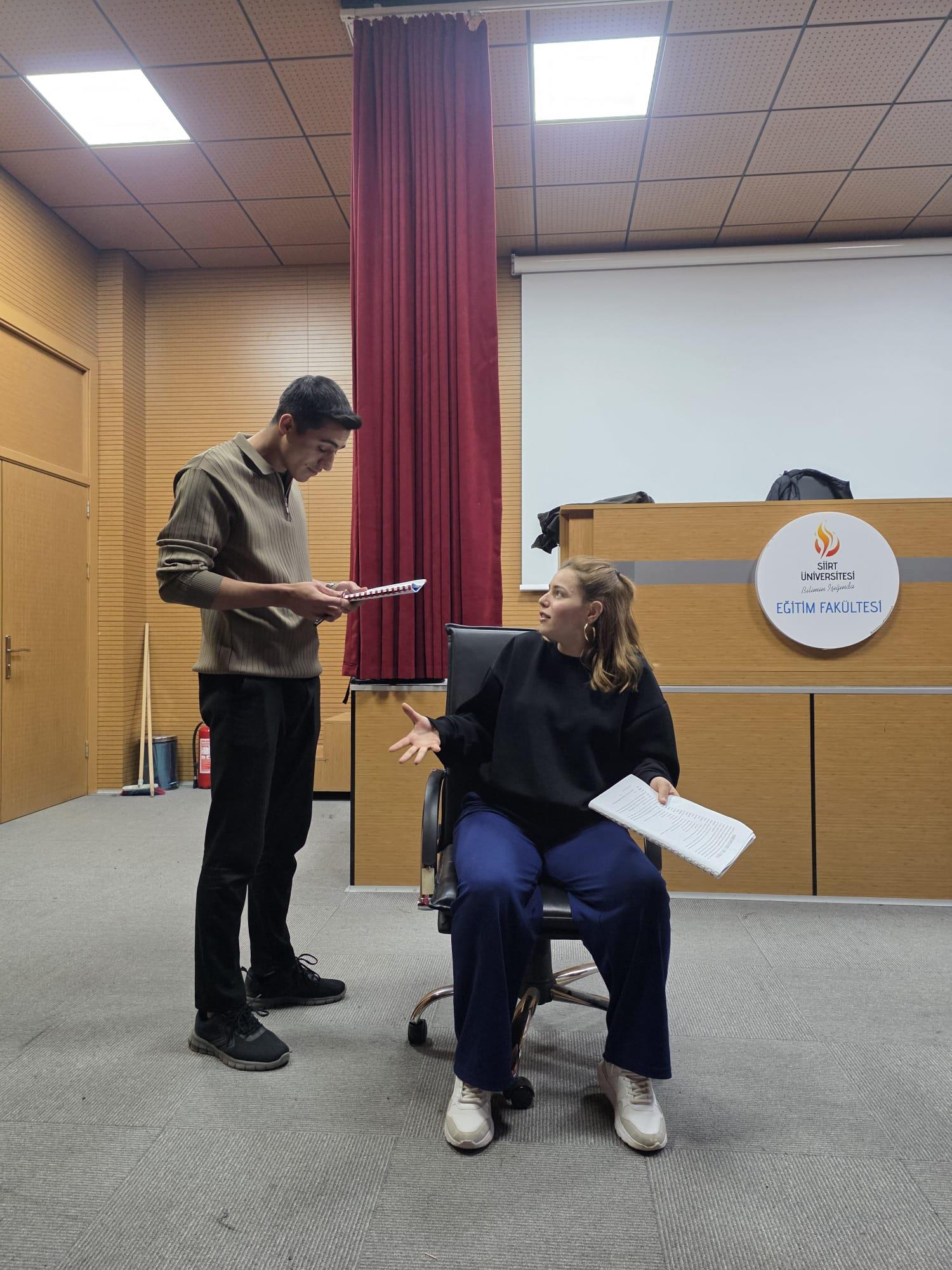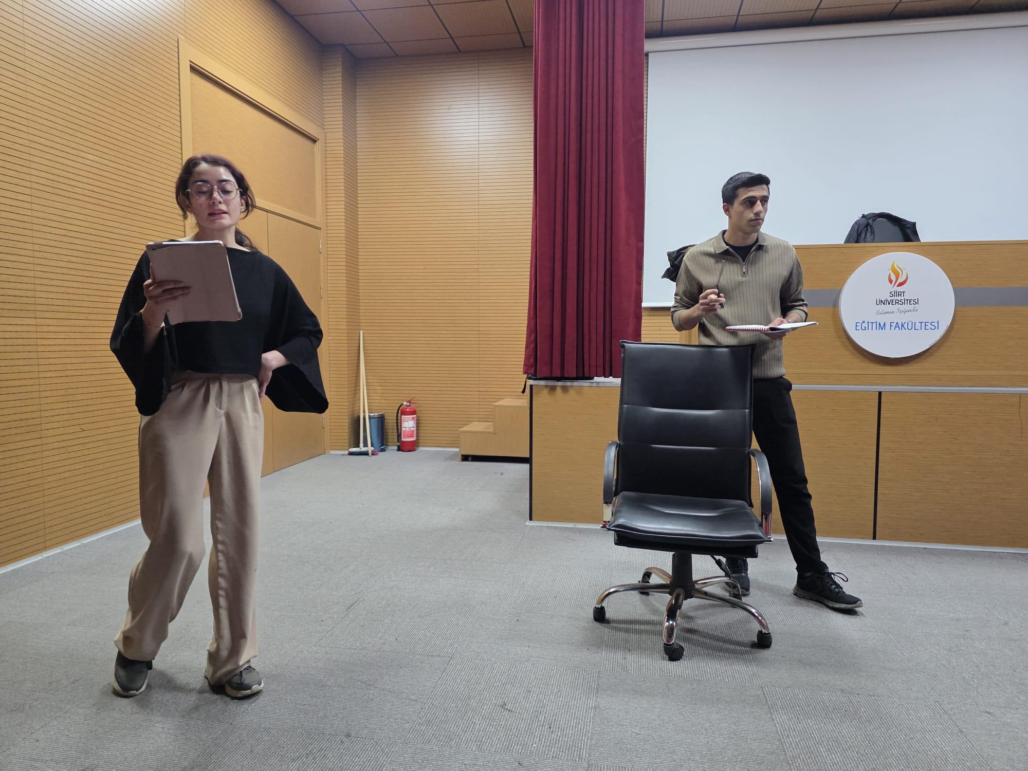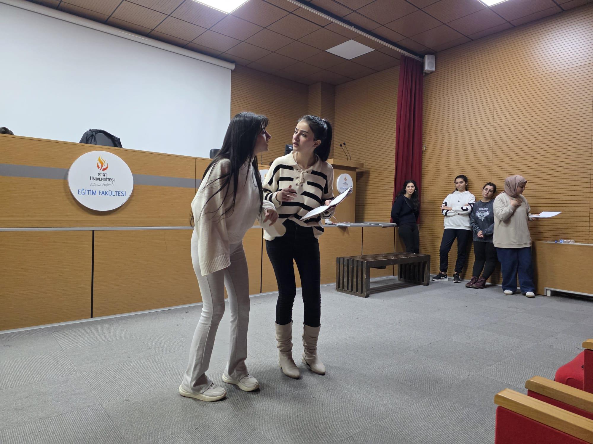 Tiyatro temelli etkinlikler kapsamında gerçekleştirilen eğitim, saat 15.00–17.00 arasında iki saat sürdü ve üniversite içinden 25 öğrencinin katılımıyla tamamlandı.