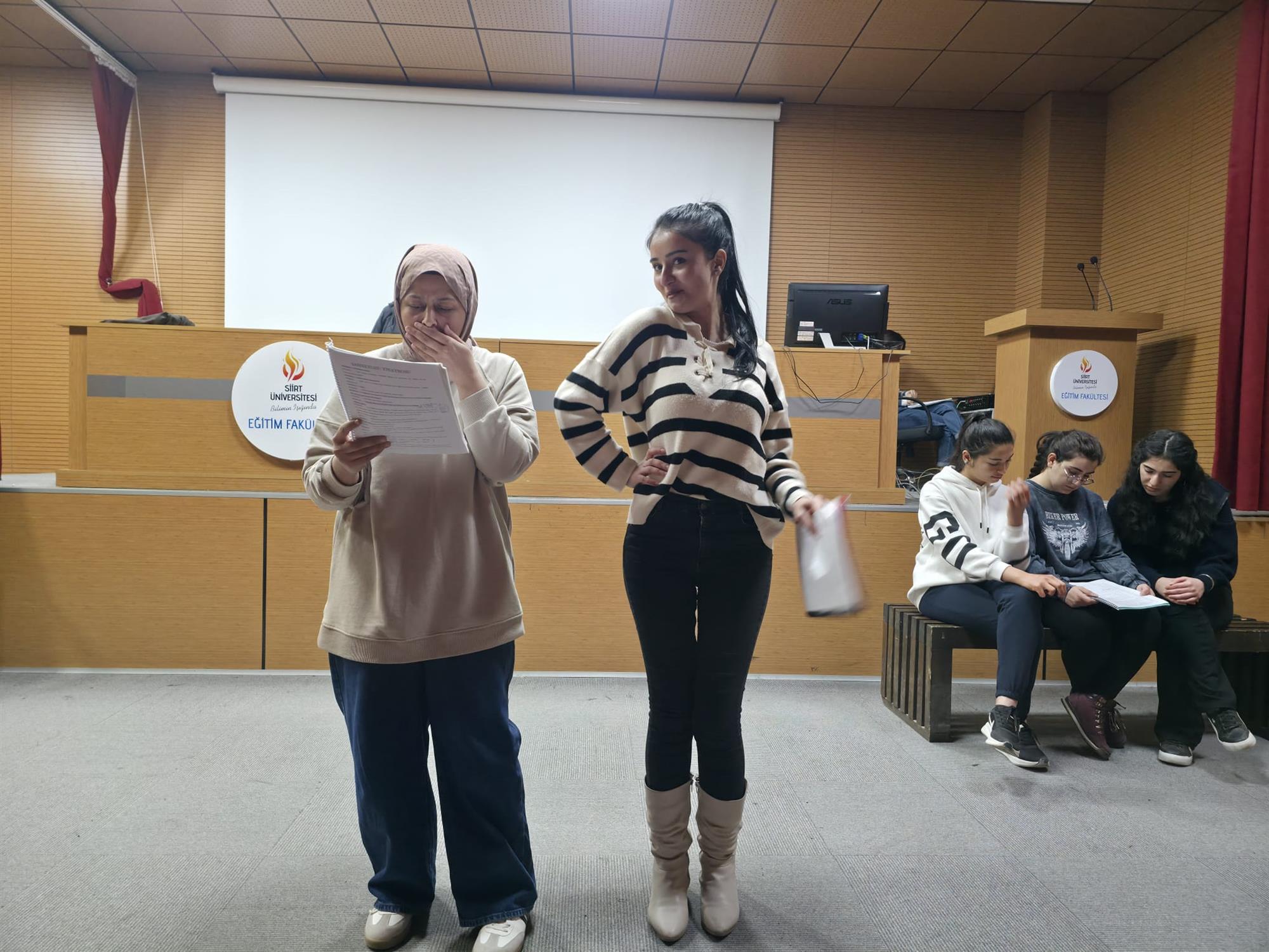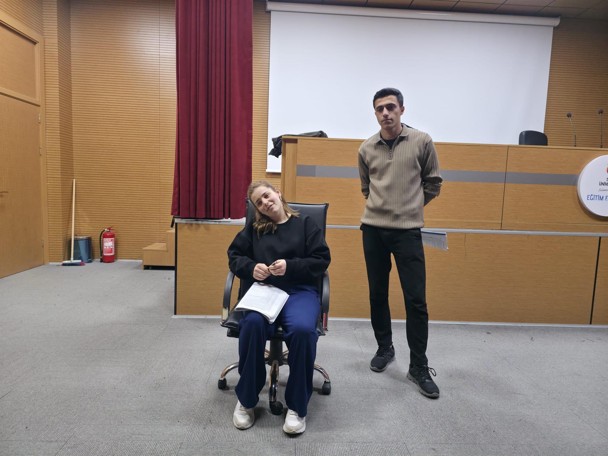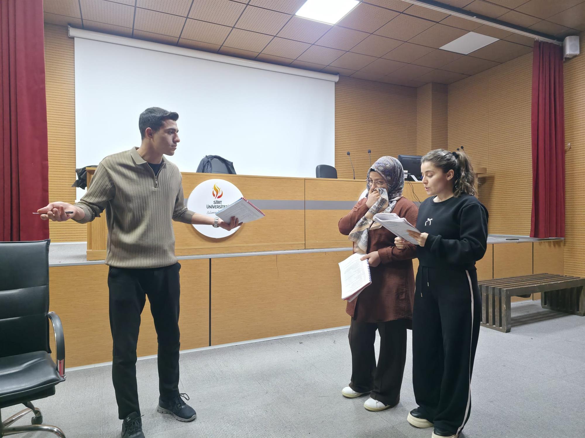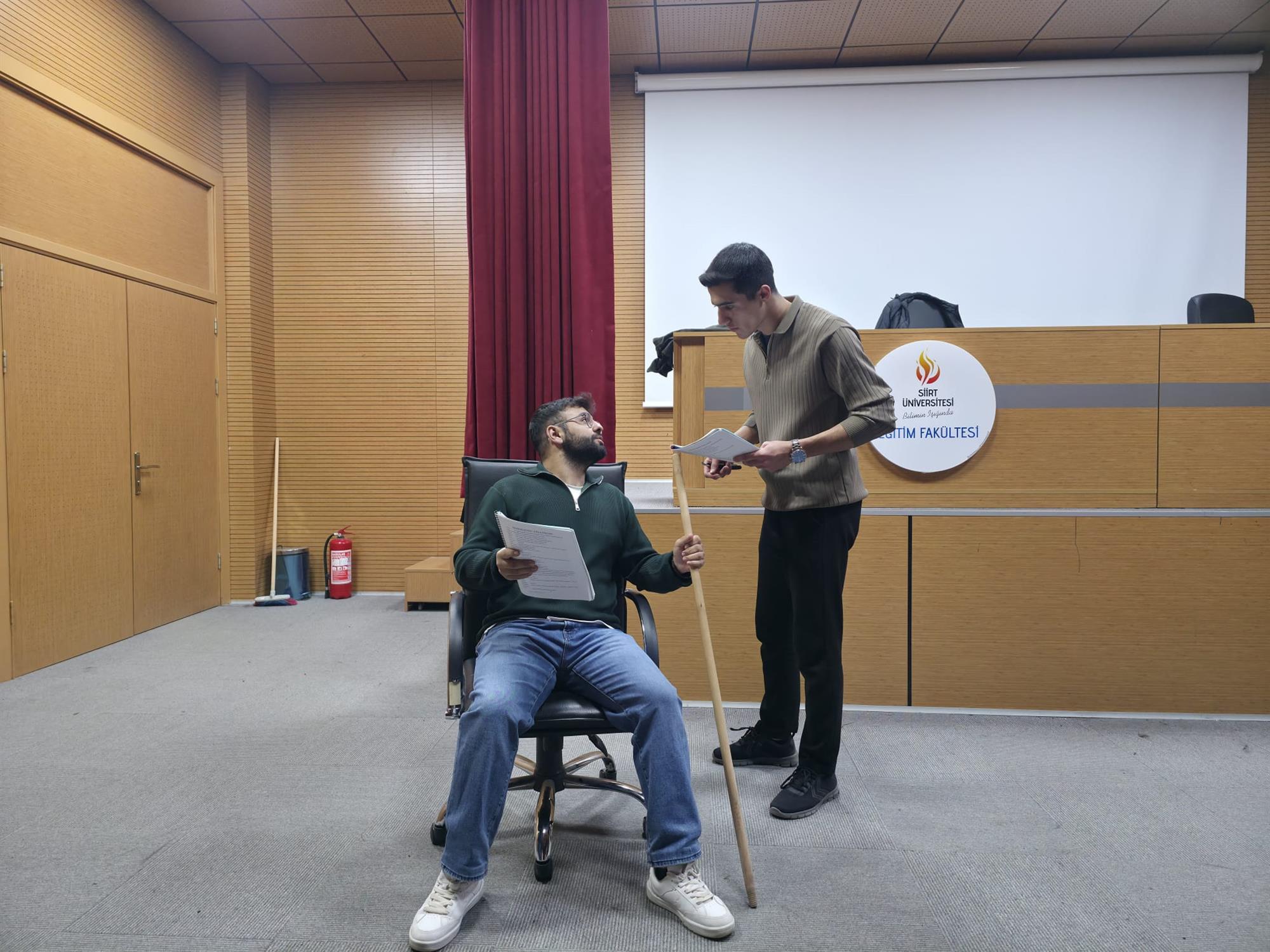 Tiyatro temelli etkinlikler kapsamında gerçekleştirilen eğitim, saat 15.00–17.00 arasında iki saat sürdü ve üniversite içinden 25 öğrencinin katılımıyla tamamlandı.