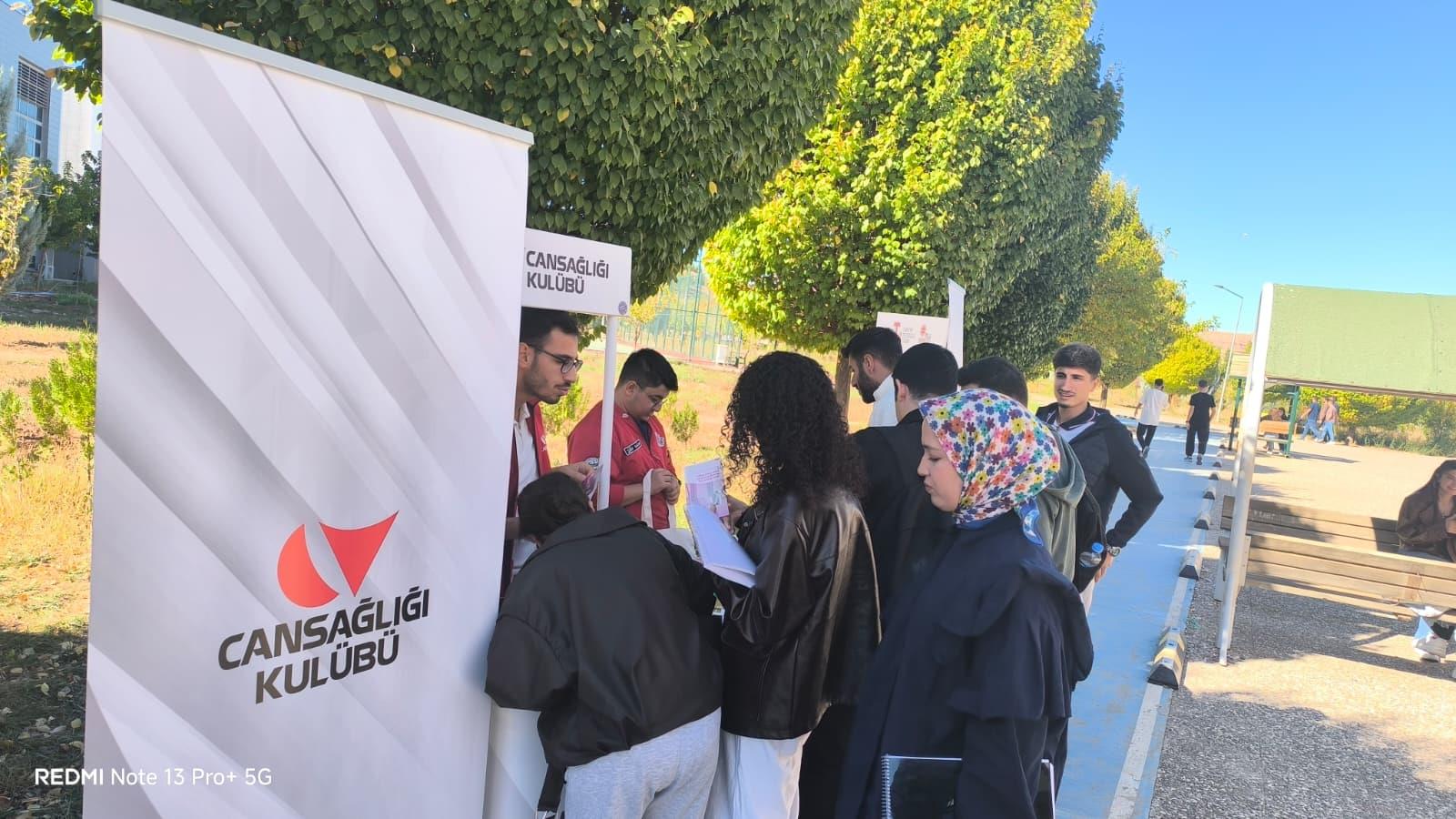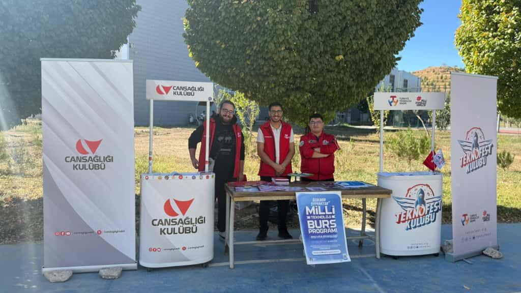 Üniversitemiz öğrenci topluluklarından "Teknofest Topluluğu" ve "Cansağlığı Topluluğu", 30 Ekim 2025 Perşembe günü Eğitim Fakültesi yanında "Tanıtım ve Bilgilendirme Standı" etkinliğini düzenledi etkinlik 6 saat sürdü ve etkinliğe 250 kişi katıldı. Etkinlik kapsamında Etkinliğimiz stand çalışması gerçekleştirildi. Standa fakültelerimizden çeşitli bölümlerinden öğrencilerin yoğun katılımı ile gerçekleştirildi. Standa Sayın Rektörümüzün Prof. Dr. Nihat ŞINDAK katılımı gerçekleşti. Rektörümüz ve yanında bulunan değerli hocalarımıza çalışmalar anlatılarak ileri dönemde yapılacak faaliyetlerden bahsedildi